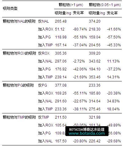 表1 不同粒徑顆粒物對抗生素的吸附