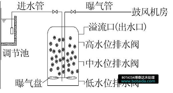CASS工藝流程:綜合廢水→調節池→一級水解酸化池→CASS池→二級水解酸化池→接觸氧化池→二沉池→排水。