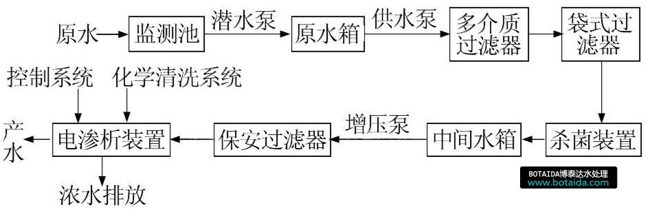 電滲析脫鹽裝置主要由預處理系統和電滲析器組成。