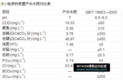 從表3可以看出,電滲析產水水質滿足工業用水水質要求,可回用于循環水補水系統中。