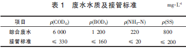 醫藥中間體生產廢水由工藝廢水和生活污水2部分組成,綜合廢水水質指標均為平均值,排放標準執行當地園區污水處理廠的接管標準。廢水水質及接管標準見表1。廢水產生量約為260 m3/d,設計處理量為300 m3/d。