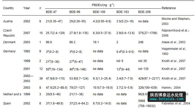 3)污水和污泥是環境中PBDEs的一個重要來源,但是對環境的影響有限,特別是污泥農用.