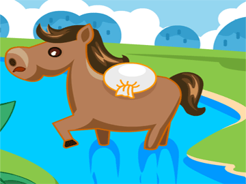 他過的很快樂,時光飛快地過去了。 有一天,媽媽把小馬叫到身邊說:“小馬,你已經長大了,可以幫媽媽做事了。今天你 把這袋糧食送到河對岸的村子里去吧。” 小馬非常高興地答應了。他馱著糧食飛快地來到了小河邊。
