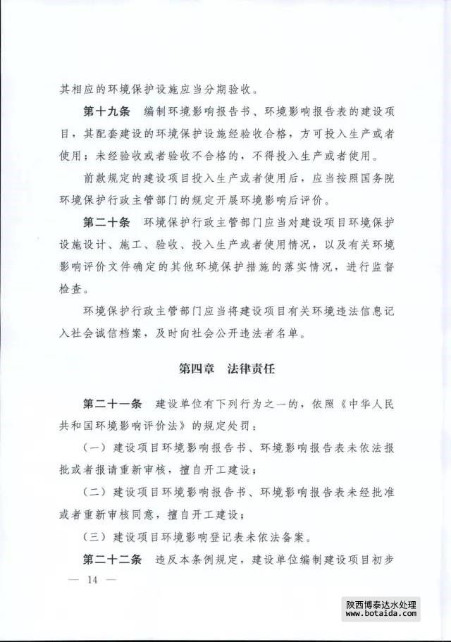 第六條 國家實行建設項目環境影響評價制度。 建設項目的環境影響評價工作,由取得相應資格證書的單位承擔。
