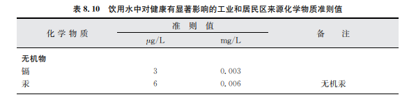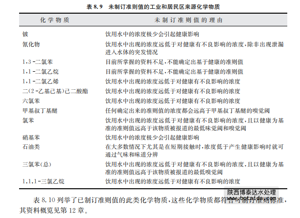 表8.9列舉了尚未制訂準則值的來源于工業和居民區活動的化學物質,并在表中說明 了理由,其資料概覽見第12章。