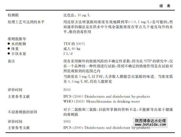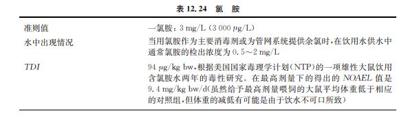 2)二氯胺和三氯胺 二氯胺和三氯胺沒有被廣泛研究,兩者現有的研究資料均不足以推導基于健康的準則 值。不過,如果氯胺的含量沒有控制得當,這些化合物會造成水的味道與氣味問題(詳見第 10章)。