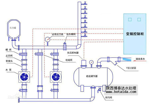 恒壓供水設備中液位變送器工作原理是當被測介質的兩種壓力通入高、低兩壓力室,作用在δ元件(即敏感元件)的兩側隔離膜片上,通過隔離片和元件內的填充液傳送到測量膜片兩側。