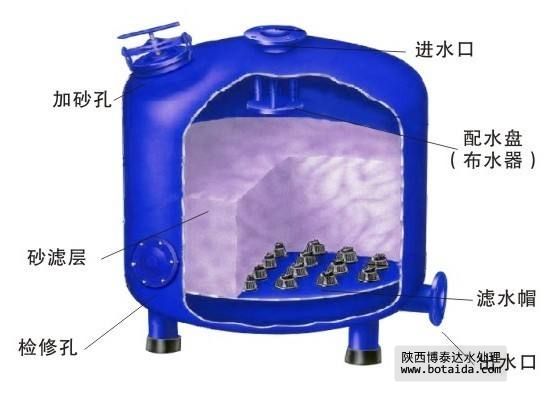 博泰達機械過濾器中采用了一種或多種的過濾介質,在一定的壓力作用下使污水通過介質,清除其中不必要的雜質,而其中填充的濾料一般為石英砂、無煙煤、錳砂等,可以根據實際的生產情況進行選擇。