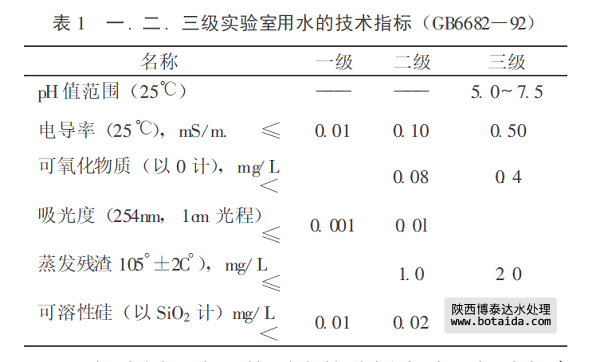 國家標準規定有分析實驗室用水的技術指標。分析實驗室用水的技術指標見下表,