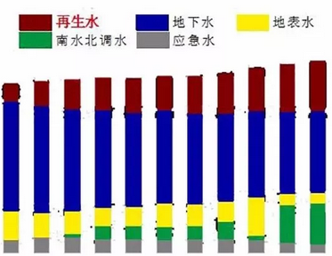 從研究的需求與定位來講,未來,再生水將成為城市的第二水源、工業的第一水源。其實這句話的前半句已經在北京市實現了。根據北京市近十年的水源的利用情況可以看到:從2006年開始,對于再生水的使用量逐年增加,到了2016年水量已經超過了南水北調的用水量。目前南水北調的中期供水量是11噸/年,而再生水的用量以后還會越來越大;從水十條目標來看,到2020年,缺水城市再生水利用率達到20%以上,京津冀區域達到30%以上;從全國的平均水平來看,目前再生水的回用率不超過10%,因此從這個方面來看,不管是理論研究,還是實際應用,再生水都有非常大的發展前景和市場。