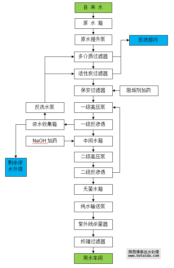 | 4 | 一級反滲透裝置 | 出力12.5m3/h,回收率75% | 套 | 1 | 博泰達 |