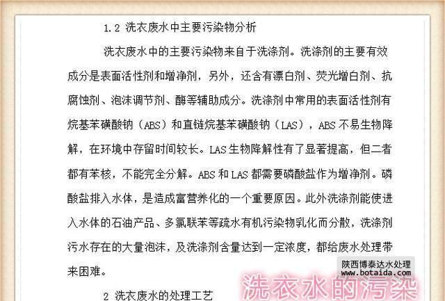 洗衣服和洗澡都是用了洗滌劑,這些污水中一般以氨氮、總氮、總磷超標,廚房污水則是纖維素、蛋白質、油脂、淀粉與腐植酸、蛋白質、酯類、糖類、氨基酸等化合物等,一般以化學需氧量(CODCr)、生化需氧量(BOD5)、動植物油表征等。
