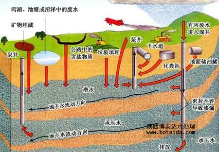 這些污染物必須要有專業的污染處理的,直排入地下水將遺禍無窮,因為有些污水甚至直接就是劇毒或者強腐蝕性,其滲透入地下后,將會形成極難處理的問題,而且它將會進入地下水循環系統,在未來很長時間內都將污染整個地區。