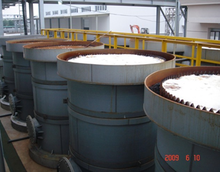 催化微電解是在不通電的情況下,利用微電解設備中填充的微電解填料產生“原電池”效應對廢水進行處理。當通水后,在設備內會形成無數的電位差達1.2V 的“原電池”。“原電池”以廢水做電解質,通過放電形成電流對廢水進行電解氧化和還原處理,以達到降解有機污染物的目的。在處理過程中產生的新生態[.O H] 、[H] 、[O]、Fe2+ 、Fe3+等能與廢水中的許多組分發生氧化還原反應,比如能破壞有色廢水中的有色物質的發色基團或助色基團,甚至斷鏈,達到降解脫色的作用;生成的Fe2+ 進一步氧化成Fe3 +,它們的水合物具有較強的吸附- 絮凝活性,特別是在加堿調pH 值后生成氫氧化亞鐵和氫氧化鐵膠體絮凝劑,它們的絮凝能力遠遠高于一般藥劑水解得到的氫氧化鐵膠體,能大量絮凝水體中分散的微小顆粒、金屬粒子及有機大分子。該工藝具有適用范圍廣、處理效果好、成本低廉、處理時間短、操作維護方便、電力消耗低等優點,可廣泛應用于工業廢水的預處理和深度處理中。應用廢水種類:染料廢水、焦化廢水、醫藥廢水、農藥廢水、樹脂廢水、助劑廢水、制革廢水、電鍍廢水、造紙廢水、淀粉廢水、大蒜廢水、垃圾滲濾液等工業類廢水。