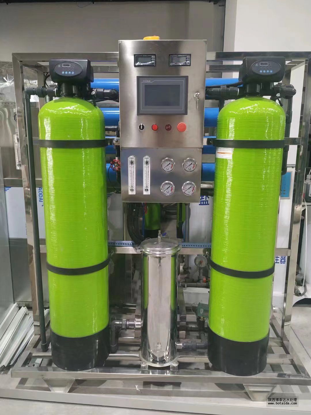 4、第四級過濾步驟是整個過程中最重要的,通過純凈水設備反滲透RO膜濾芯,過濾掉水中的無機離子、細菌和病毒,確保水質的最優,但是這個過程中會產生廢水。